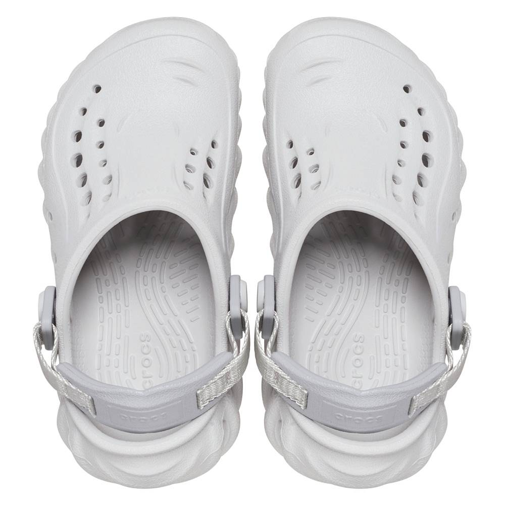 Az Echo kollekció azok számára készült, akik kényelemre vágynak anélkül, hogy kompromisszumot kötnének a megjelenésükkel. Ez a merészen formázott, a kisebbek számára készült papucs minden, csak nem konformista, sportos inspirációval, amely az utcai viseletet tartja a középpontban. A könnyed súlyt képviselő és tartós Croslite™ konstrukciónak, valamint a LiteRide™ drop-in talpbetétnek köszönhetően az Echo Clog papucsban kényelmesen közlekedhetsz.