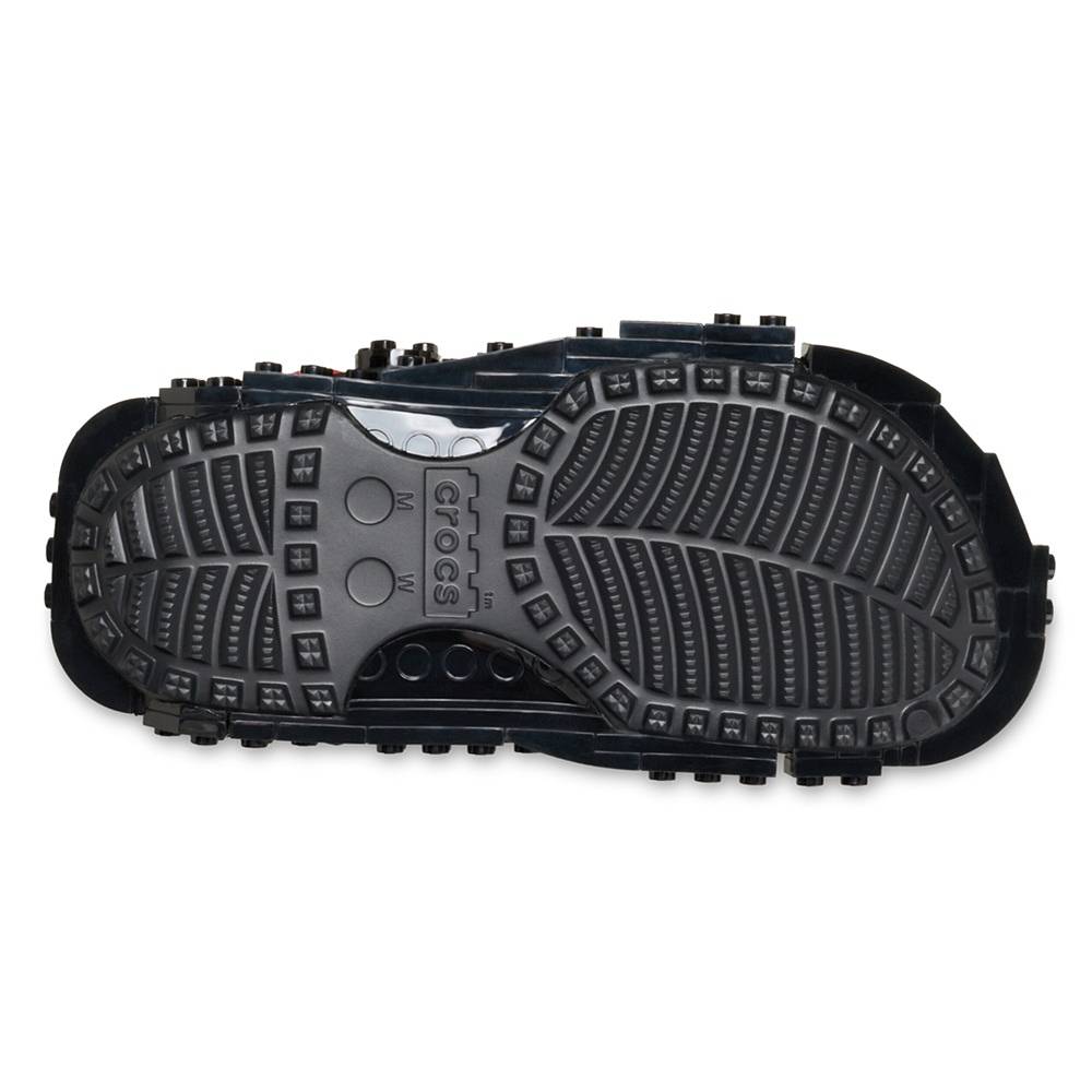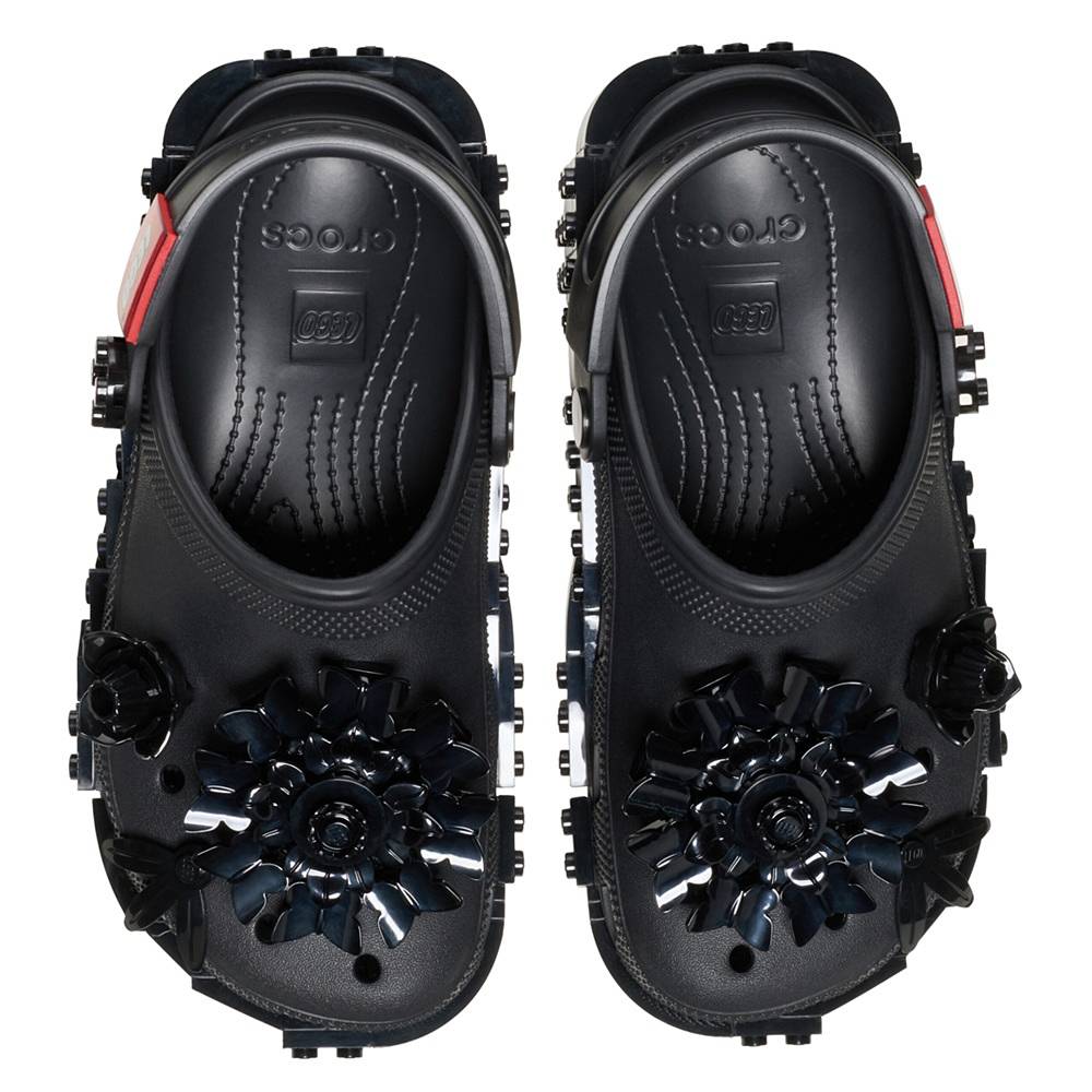 Ez a női Crocs papucs a LEGO Botanicals vonal inspirációjára épít, és egy teljesen más hangulatot hoz, mint a klasszikus LEGO-s modellek. A fekete színű alapra épülő dizájnt LEGO elemekből formázott fekete virágos papucsdíszek egészítik ki, amelyek inkább dekoratív irányba viszik el a modellt. A felsőrész és a talp környékén megjelenő apró, növényi motívumok egyedibb, kevésbé játékos, inkább stílusos megjelenést adnak.